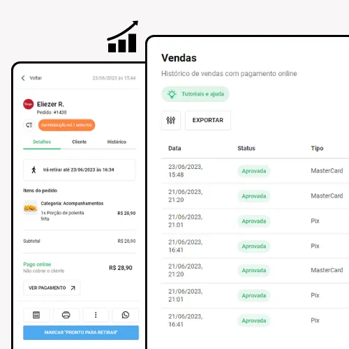 Ofereça aos seus clientes diferentes opções de pagamento para aumentar as vendas do seu negócio. Com as nossas ferramentas, você poderá atender a diversas demandas de pagamento em seu site de delivery ou loja.