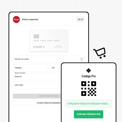 Permita que seus clientes realizem pagamentos seguros e rápidos com cartão de crédito ou PIX.